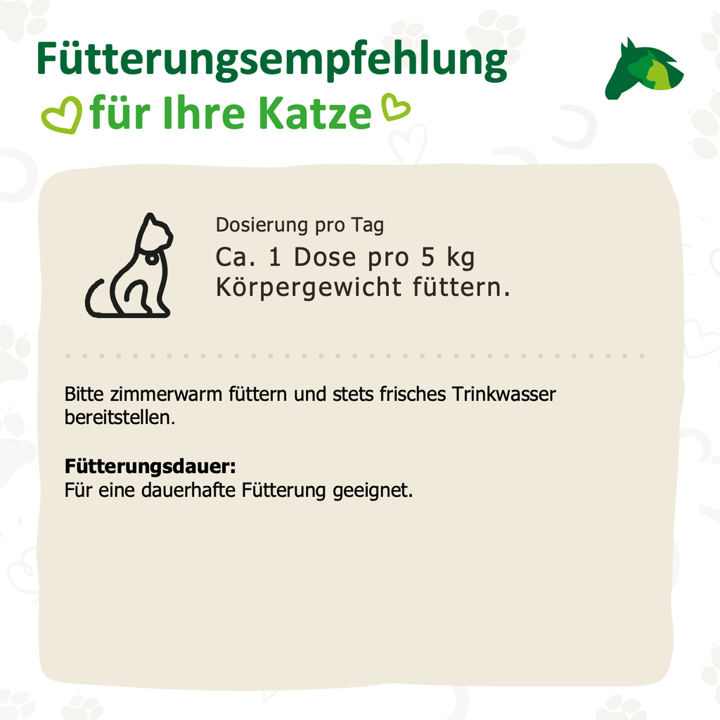 Durch die besonders hohe Akzeptanz und den feinen Geschmack eignet sich dieses Futter auch für wählerische Feinschmecker. Die Kombination aus hochwertigem Fleisch, natürlicher Brühe und nährstoffreichem Lachsöl sorgt nicht nur für beste Verträglichkeit, sondern auch für ein rundum ausgewogenes, artgerechtes Menü.