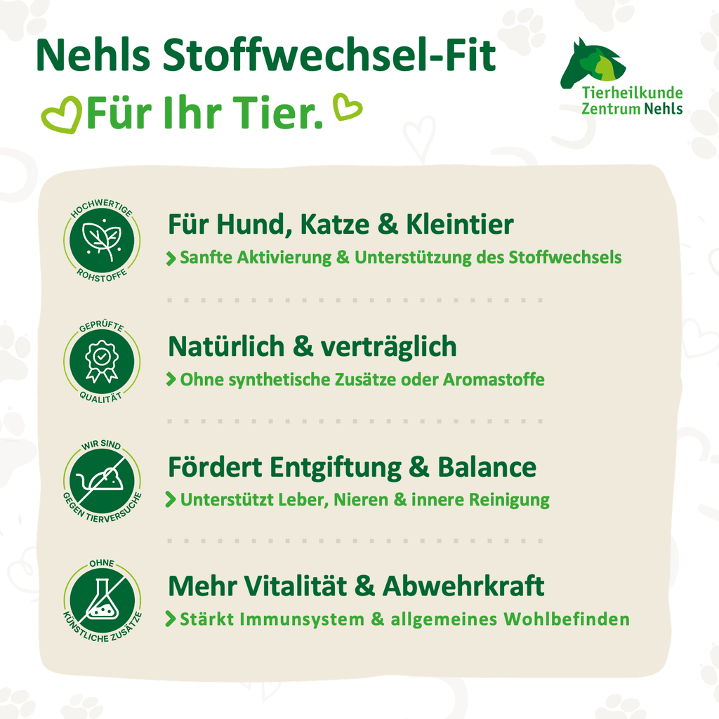 Nehls Stoffwechsel-Fit Hund, Katze, Kleintier Nehls Stoffwechsel-Fit ist ein sorgfältig abgestim...