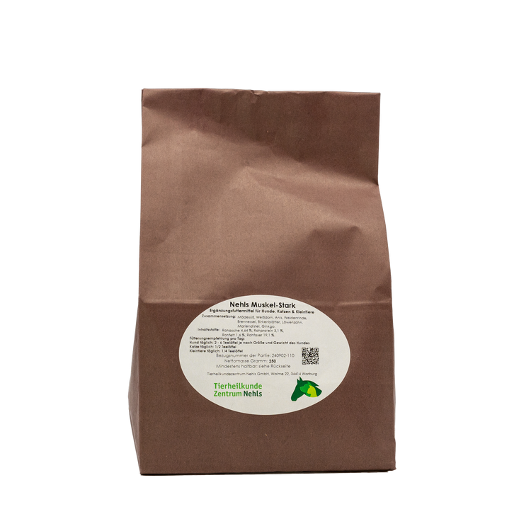 Die Muskulatur spielt bei Hunden, Katzen und Kleintieren eine zentrale Rolle für Bewegung, Kraft, Ausdauer und Lebensfreude. Doch verschiedenste Belastungen können das empfindliche Muskelgewebe aus dem Gleichgewicht bringen. Überanstrengung beim Training oder Spiel, Übersäuerung durch falsche Belastung, Unfälle, Verletzungen oder auch eine unzureichende Nährstoffversorgung hinterlassen ihre Spuren. Die Folgen reichen von Muskelkater, Verspannungen und Zerrungen bis hin zu Muskelschwäche, Muskelabbau (Atrophie) oder schmerzhaften Spasmen. Umso wichtiger ist es, die Muskulatur gezielt und sanft zu unterstützen. Genau hier setzt Nehls Muskel-Stark an – ein speziell entwickeltes Ergänzungsfuttermittel für Hunde, Katzen und Kleintiere, das die Muskulatur auf natürliche Weise kräftigt, Verspannungen entgegenwirkt und zu einer gesunden Leistungsfähigkeit beiträgt.