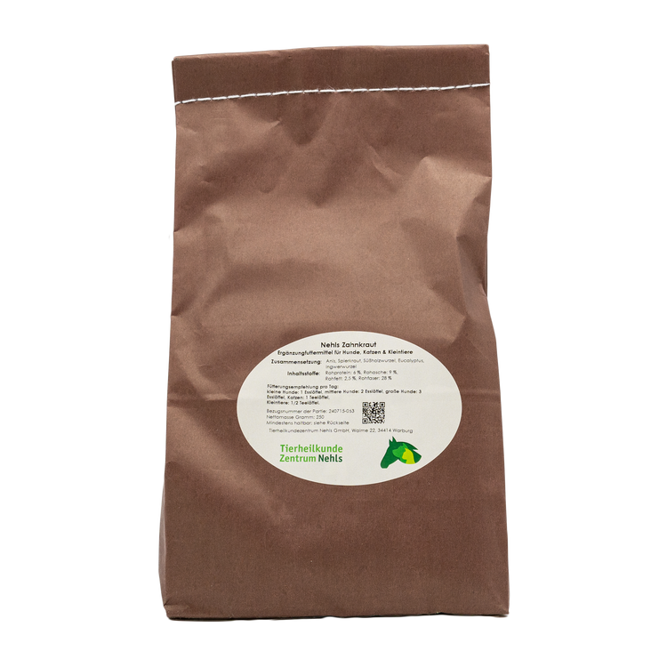 So wird Nehls Zahnkraut nicht nur gerne zur begleitenden Unterstützung bei bestehendem Zahnstein oder Zahnbelag eingesetzt, sondern auch vorbeugend, um die Maulhygiene zu fördern und die Zahngesundheit langfristig zu erhalten. Für Hund, Katze und Kleintier ist es damit eine sanfte, rein natürliche Möglichkeit, die Basis für ein gesundes Gebiss und damit für mehr Lebensfreude zu schaffen.