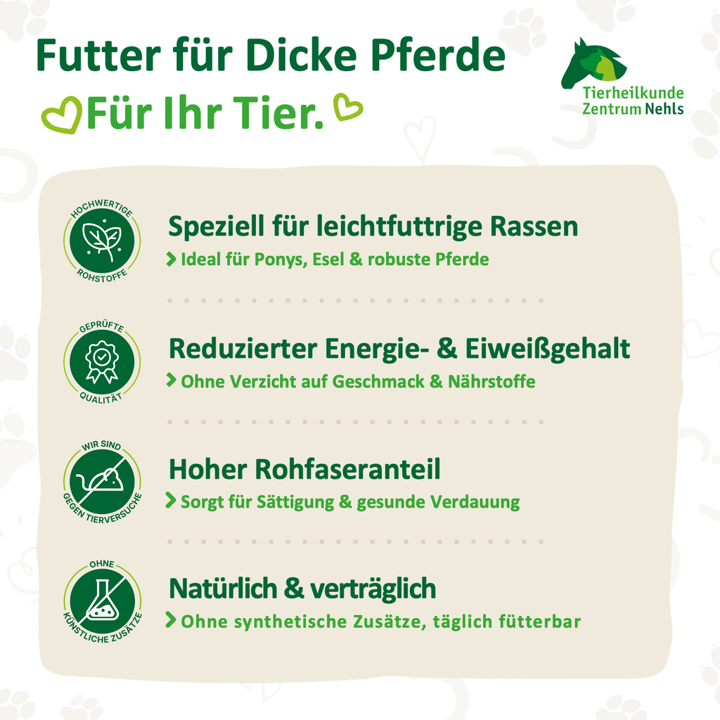 Nehls Pferdefutter wurde für verschiedene Ansprüche und Bedürfnisse, wie auch zur Pferdefütterung des gesunden Pferdes, Ponys und Esels verschiedener Leistungsbereiche konzipiert.