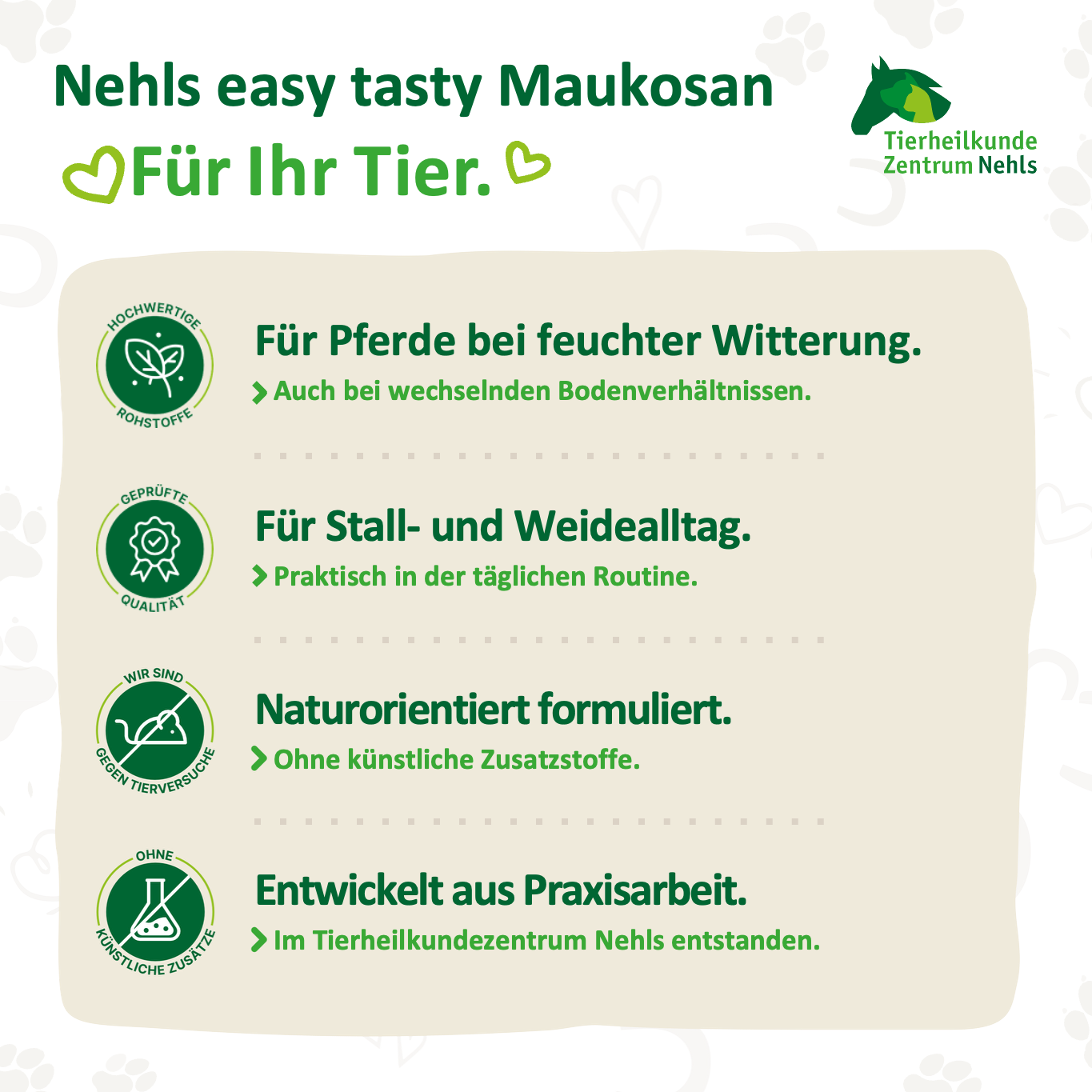 Nehls easy tasty Maukosan, tierärztlich entwickelt von Tierärztin Katrin Knecht, seit 20 Jahren in der Naturkunde tätig, mit der Erfahrung unseres Teams und unserer Tierheilpraktikerin, Walme 22, 34414 Warburg-Scherfede.