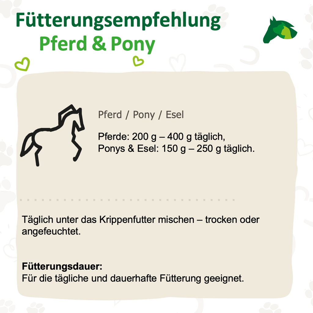 Die bewusste Auswahl an Rohstoffen macht das Futter besonders verträglich und sorgt dafür, dass es auch von empfindlichen Pferden gut angenommen wird. In Kombination mit ausreichend Bewegung und angepasster Raufuttergabe kann es helfen, das Gewicht schonend zu regulieren und gleichzeitig die Versorgung mit wichtigen Nährstoffen sicherzustellen.