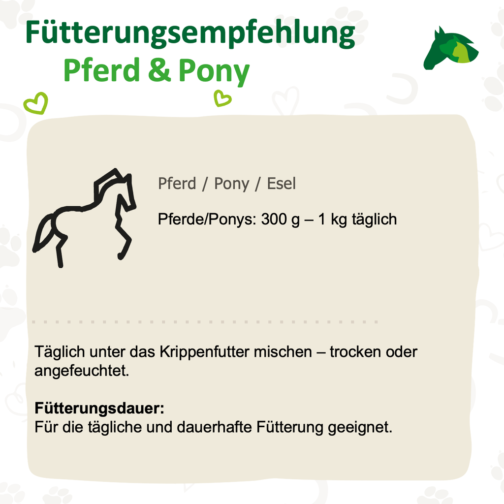 Ein weiterer Vorteil liegt in der Unterstützung der Darmgesundheit: Die enthaltenen Kräuter liefern nicht nur essentielle Nährstoffe, sondern fördern auch eine gesunde Verdauung. Das wirkt sich positiv auf den gesamten Stoffwechsel aus und trägt zu mehr Energie, besserem Fellglanz und einem vitaleren Erscheinungsbild bei.
